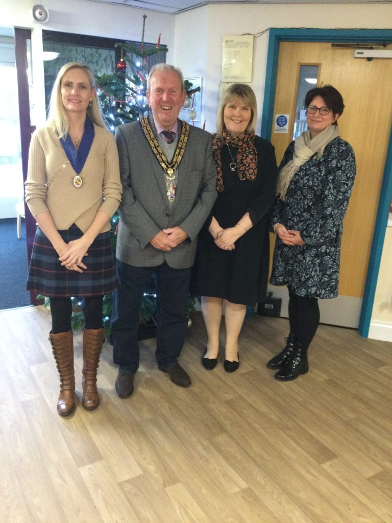 Picture showing the Mayor and Consort with staff at Kathleen Chambers Christmas Bazaar